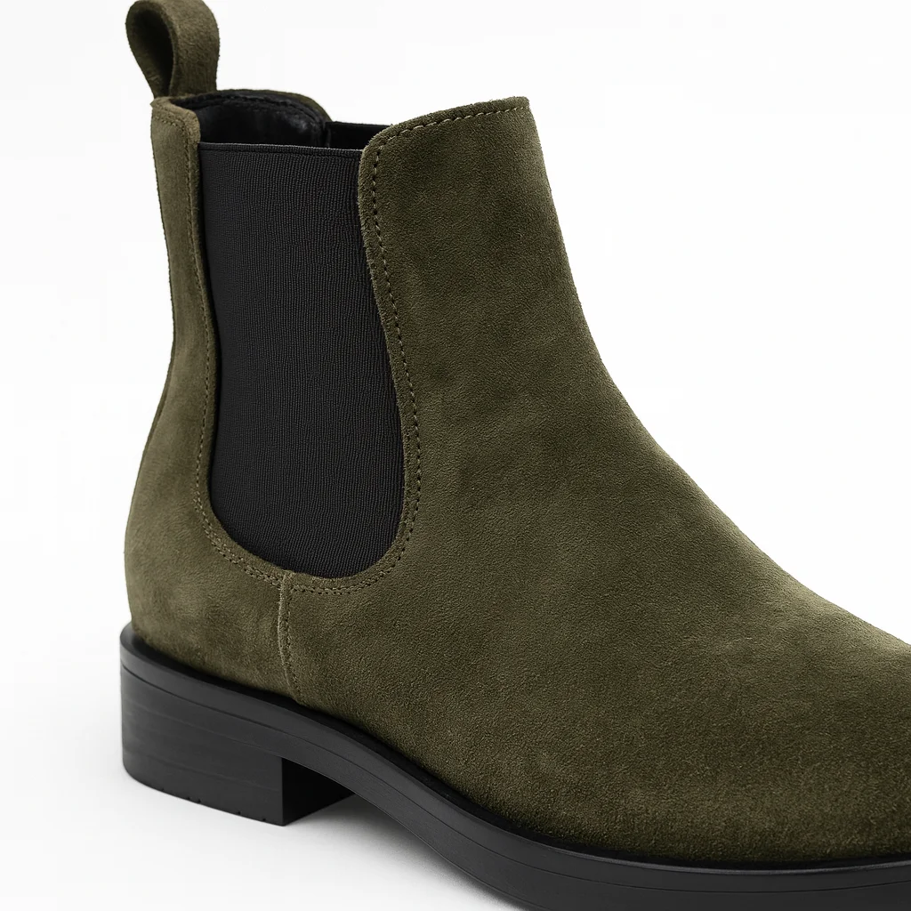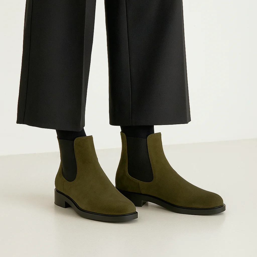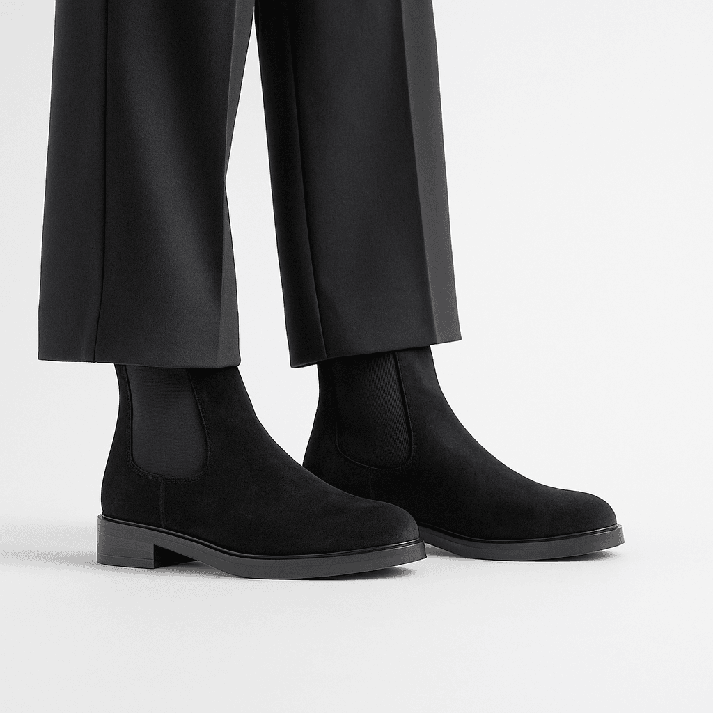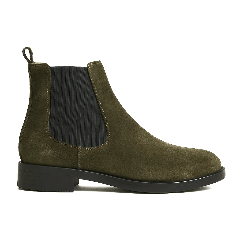 Ghete Chelsea din piele întoarsă naturală – minimaliste, comode, ușor de asortat